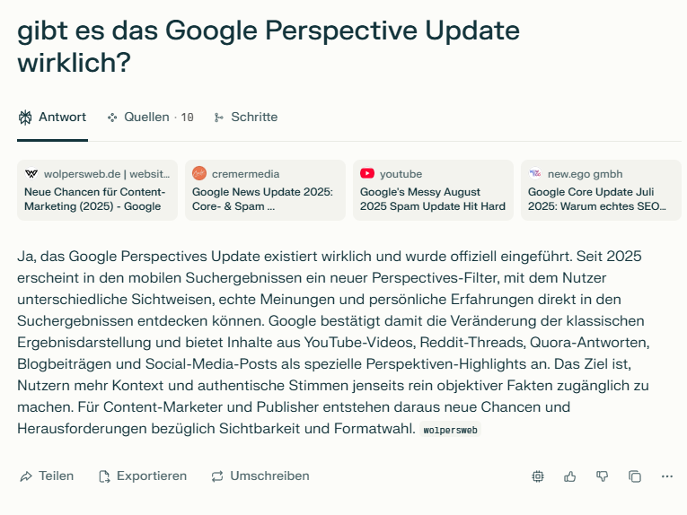 "Die Schlange beißt sich in ihren eigenen Schwanz", fasst SEO-Strategin Lily Ray ihre kürzliche Erfahrung mit KI in einem Post auf LinkedIn zusammen. Sie hatte laut eigenen Angaben zuvor die künstliche Intelligenz (KI) Perplexity nach News aus den Bereichen Suchmaschinenoptimierung (SEO) und KI gefragt. Als Antwort zitierte der Service zwei KI-generierte Artikel, die Algorithmus-Updates von Google erfinden. Die Rede sei von einem "Perspective" Core Algorithm Update gewesen, das Google im September dieses Jahres ausgerollt habe.